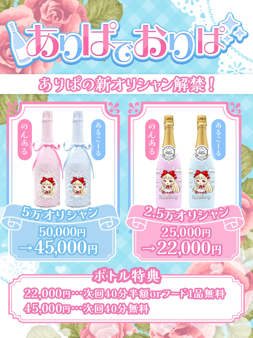 22,000円・・・次回40分半額orフード1品無料